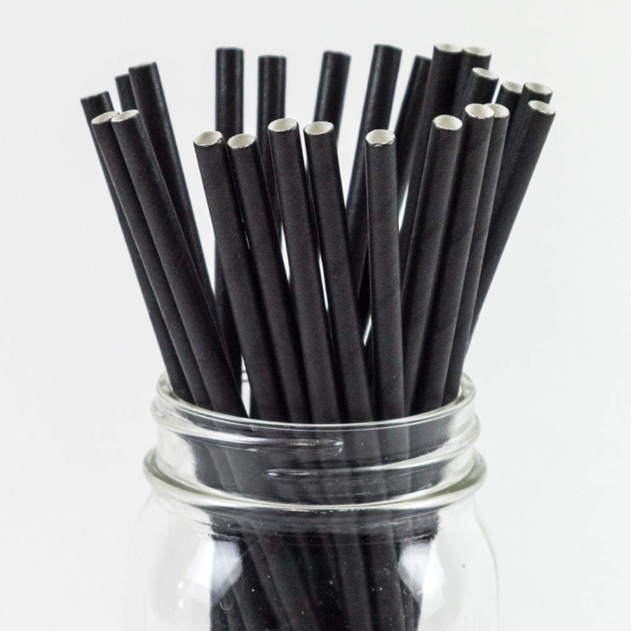 Eco-friendly black and clear PP straws with an 8mm diameter. Packaged in a 1X50 pack.