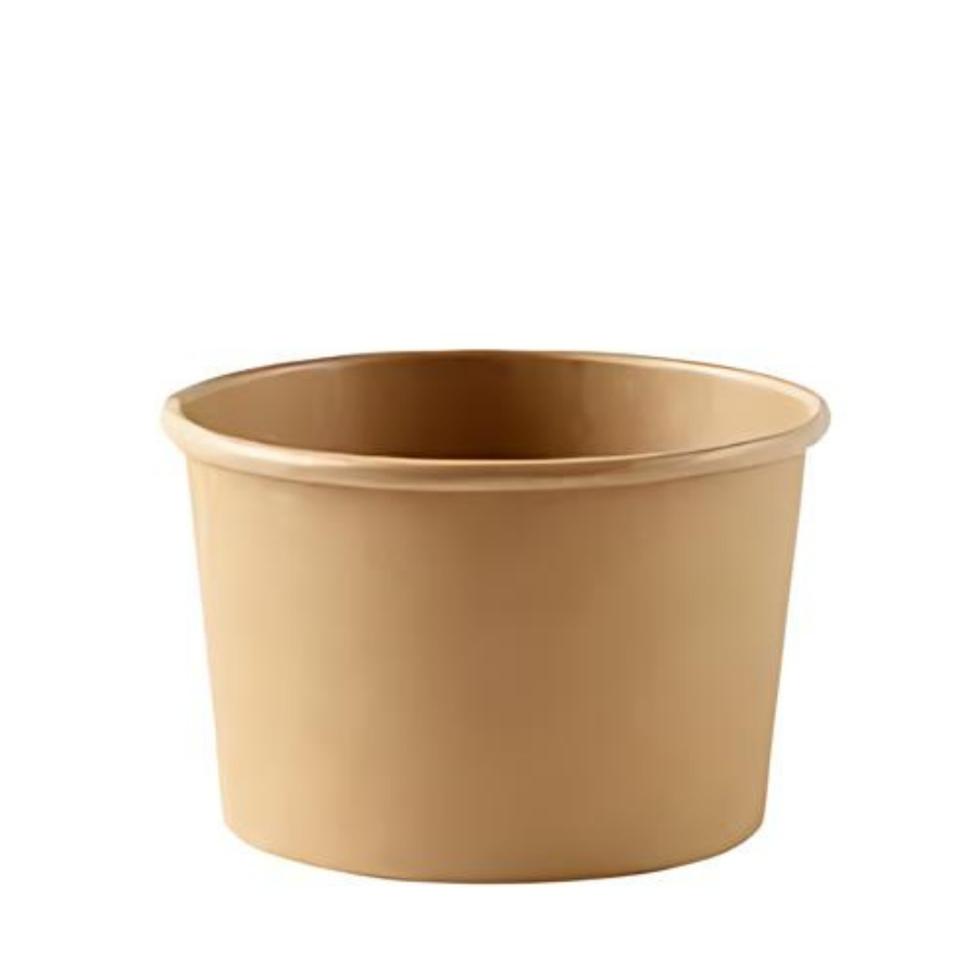 Kraft soup cups with an 8oz capacity, ideal for soups and stews. Packaged in a 1X500 pack.