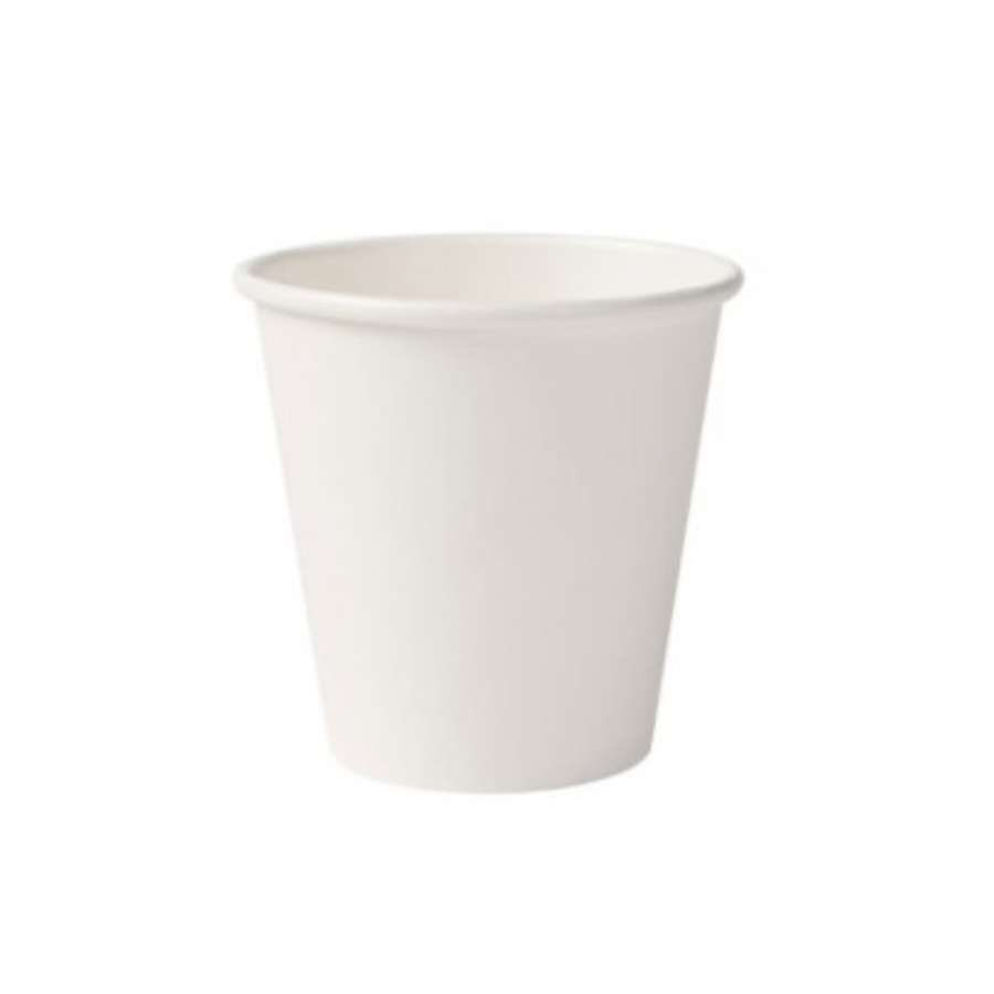 White plastic cup, 6oz capacity.